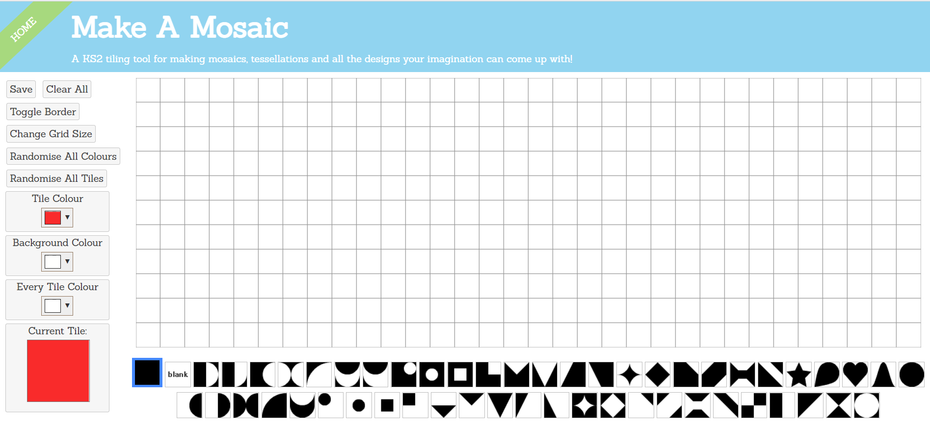 - Randomise All Colours/ Randomise All Tiles = Randomised colours/tiles will be appeared on the working are